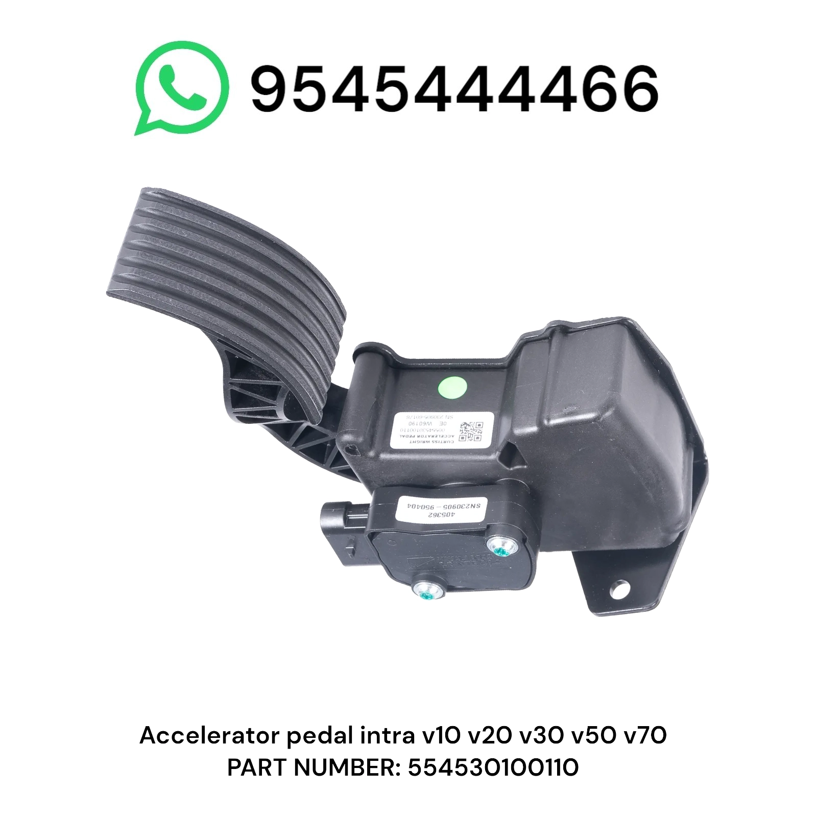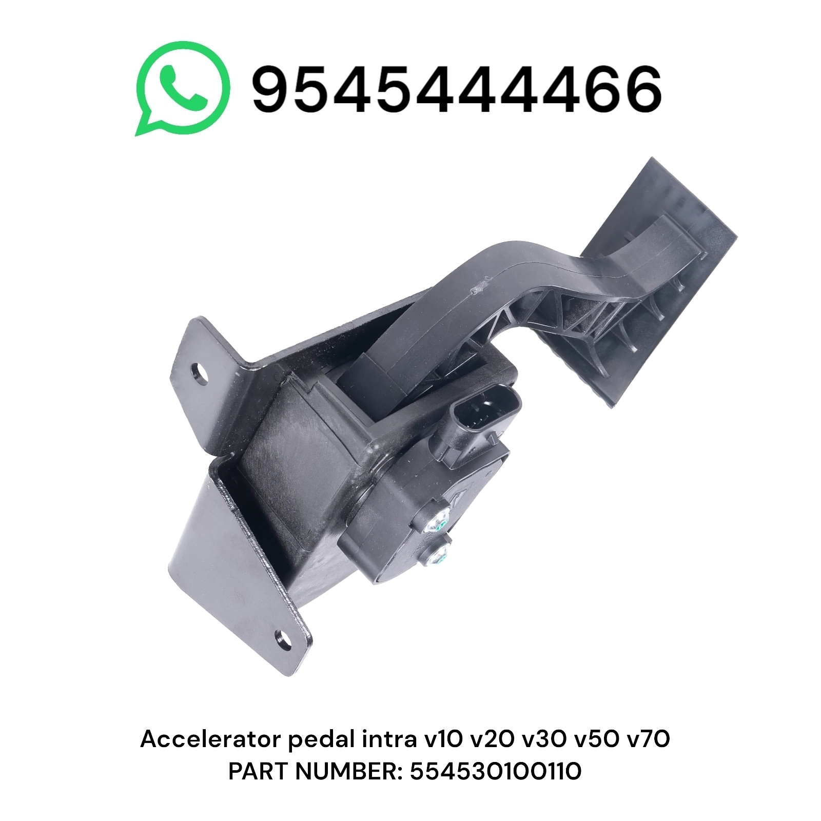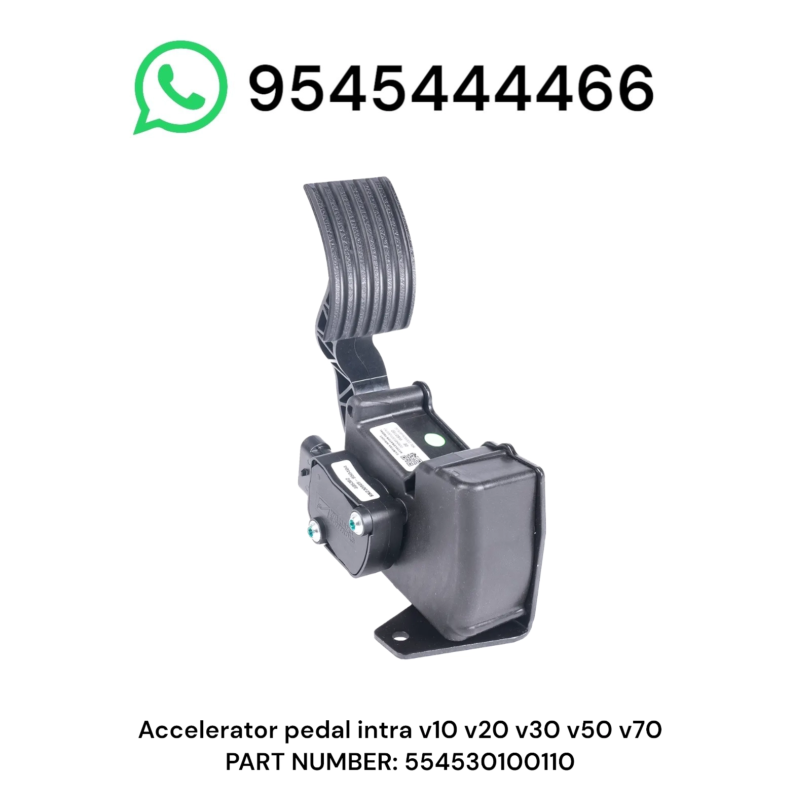 This Accelerator Pedal Assembly (APPS – Accelerator Pedal Position Sensor) with part number 554530100110 is designed for Tata Intra commercial vehicles, including V10, V20, V30, V50, and V70 models.